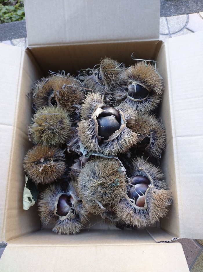 | 10月)栗を収穫しました。去年お手製の栗きんとんを作ってみましたがメチャ美味しかったので今年も挑戦してみます。 |