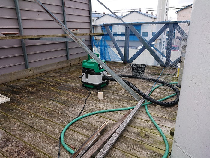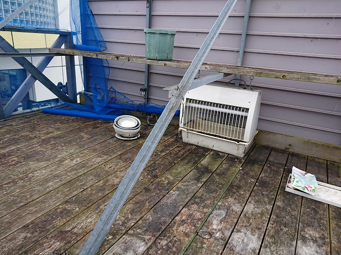 3月)コンテナ上果樹園、老朽化の為床のペンキ塗りと網の張替えなどリニューアル中です。