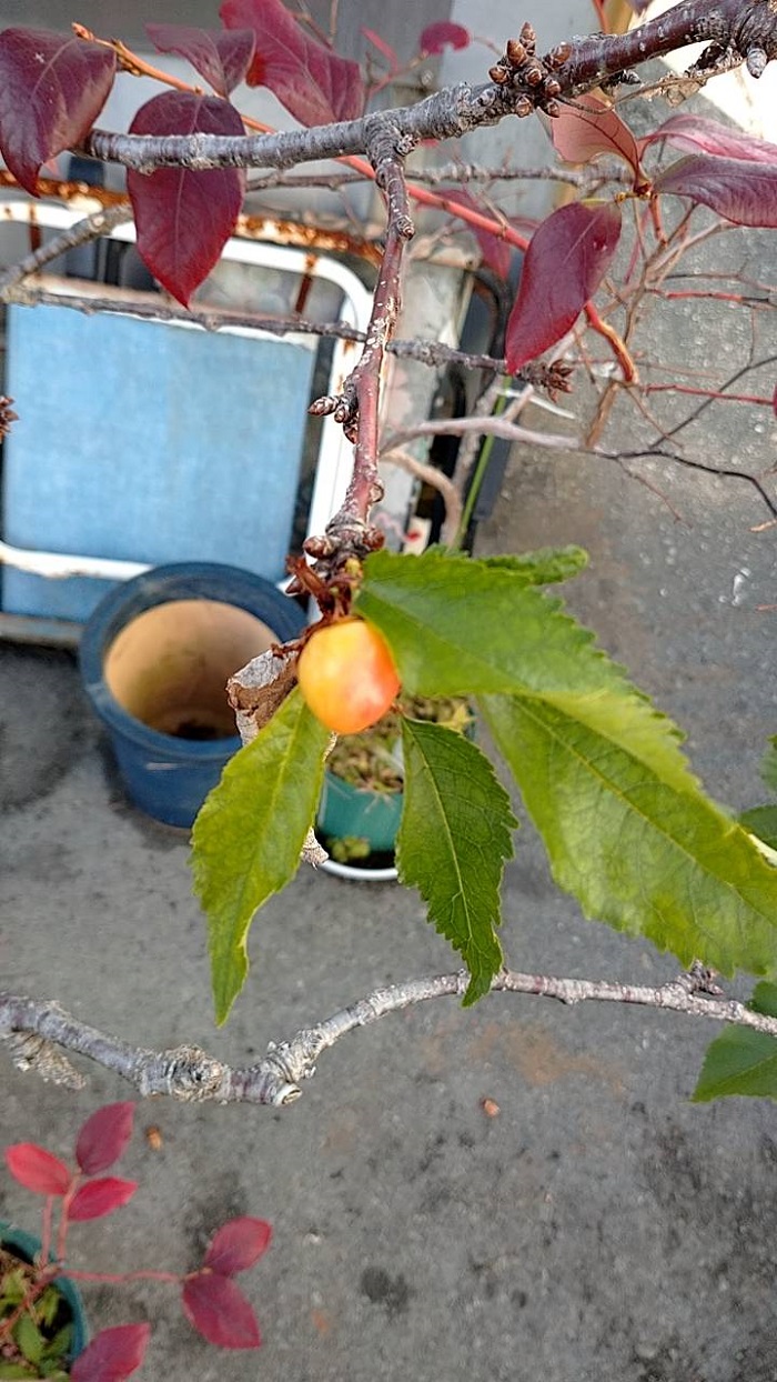 異常気象でこの時期にサクランボがなっています。