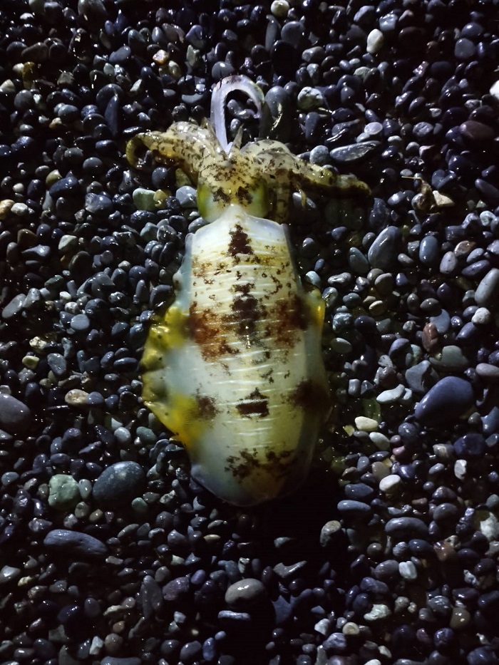 雨の中、釣りをした4月6日、2.5キロのアオリイカ仕留めました。